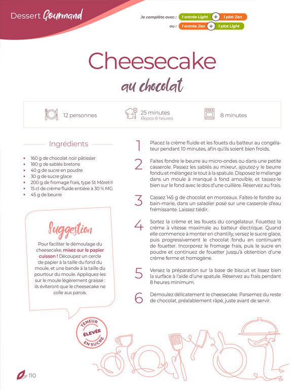 Alors avec «Les desserts au chocolat, c'est permis », prenez du plaisir à cuisiner facilement des desserts gourmands et bien calibrés et à les savourer sans culpabilité. »